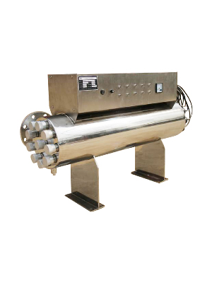 本裝置采取了特制的高強度無臭氧紫外線殺菌燈和內壁經過特殊處理的微炭臭氏體不銹鋼筒體,筒體外側經特殊拋光處理,使經過預處理的水在流過筒體時受到253.7nm紫外線的足夠線量的照射,具有良好的殺菌效果,也有效減少了對超純水的影響。