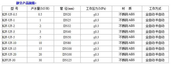 ☆由于每根超濾組件在出廠前加入保護液,使用前要徹底沖洗組件中的保護液,先用低壓(0.1MPa)給水沖洗1小時,然后再用高壓(0.2MPa)給水沖洗1小時,無論低壓還是高壓沖洗時,系統(tǒng)的產(chǎn)水排放閥均應全部打開。在使用產(chǎn)水時,應檢查并確認產(chǎn)品水中不含有任何殺菌劑。 4、